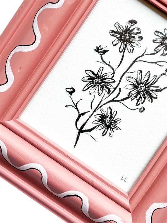 DAISY ORIGINAL INK ARTWORK IN A HAND PAINTED PINK PRELOVED FRAME