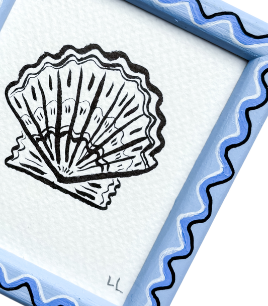 MINI SCALLOP ORIGINAL INK ARTWORK IN A HAND PAINTED BLUE WIGGLE FRAME