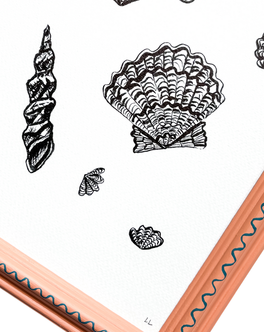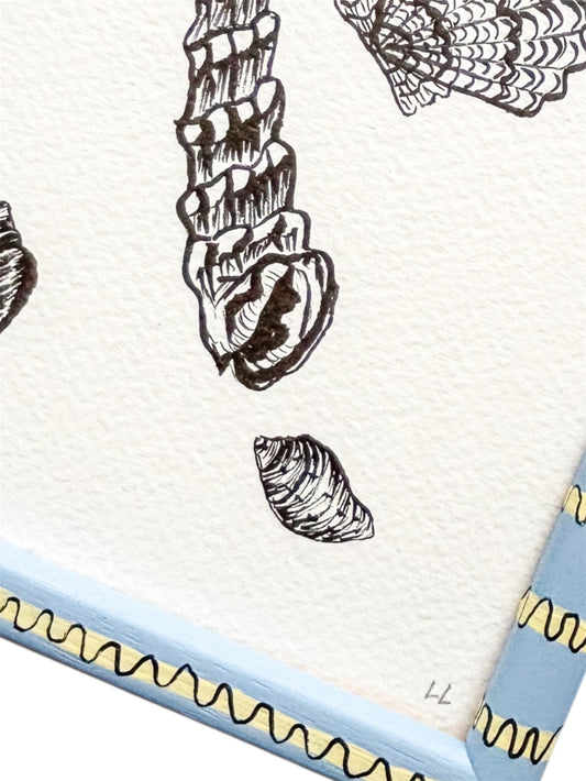 SEASHELL COLLECTION ORIGINAL INK ARTWORK IN HAND PAINTED FRAME