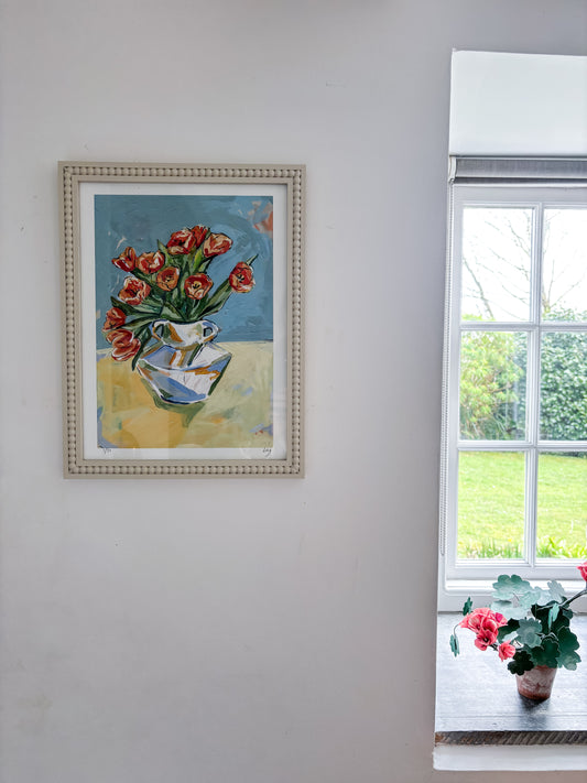 LIMITED EDITION 'TULIPS ON BLUE' GICLEE ART PRINT