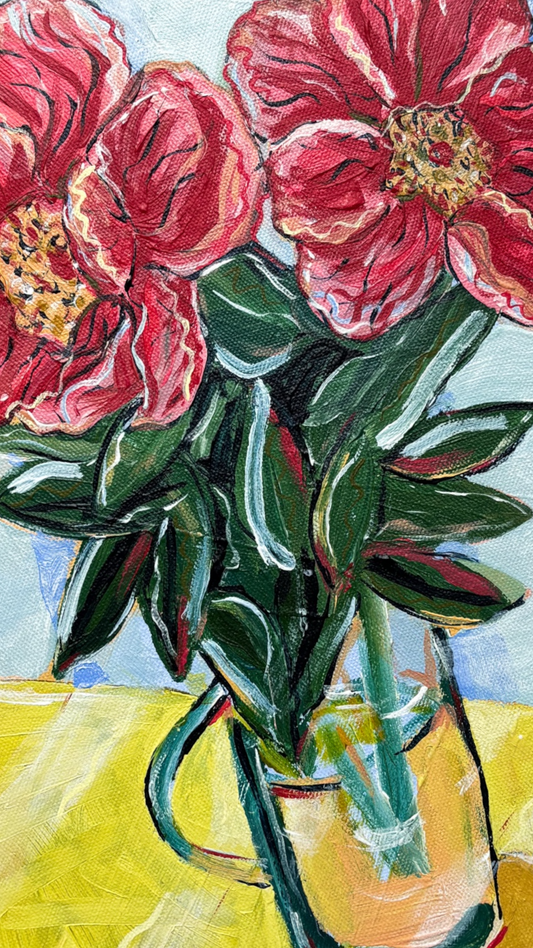 ‘SUMMER PEONIES' FRAMED ORIGINAL PAINTING