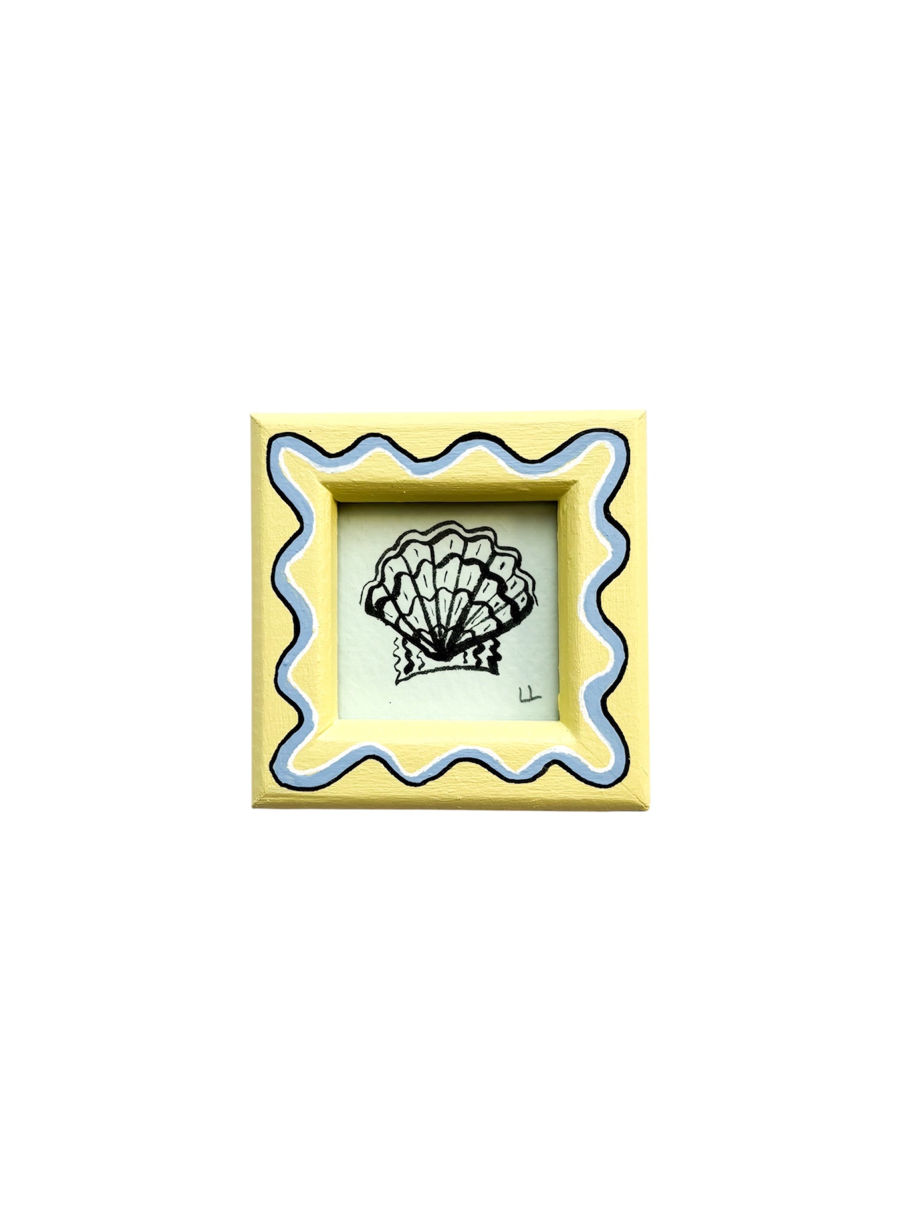 MINI SCALLOP ORIGINAL INK ARTWORK IN A HAND PAINTED YELLOW AND BLUE WIGGLE FRAME